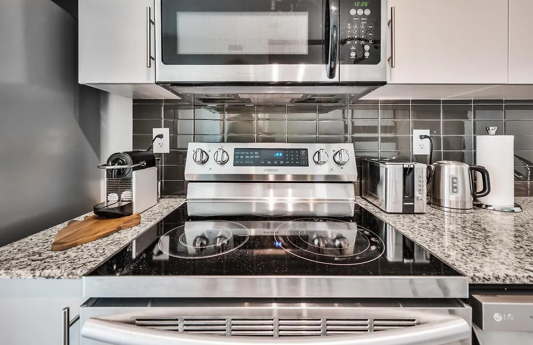 تحتوي هذه الشقة على المطبخ كامل التجهيز ولوازم إعداد القهوة والشاي، وتوفّر المايكرويف والغلاية الكهربائية والبرَّاد.